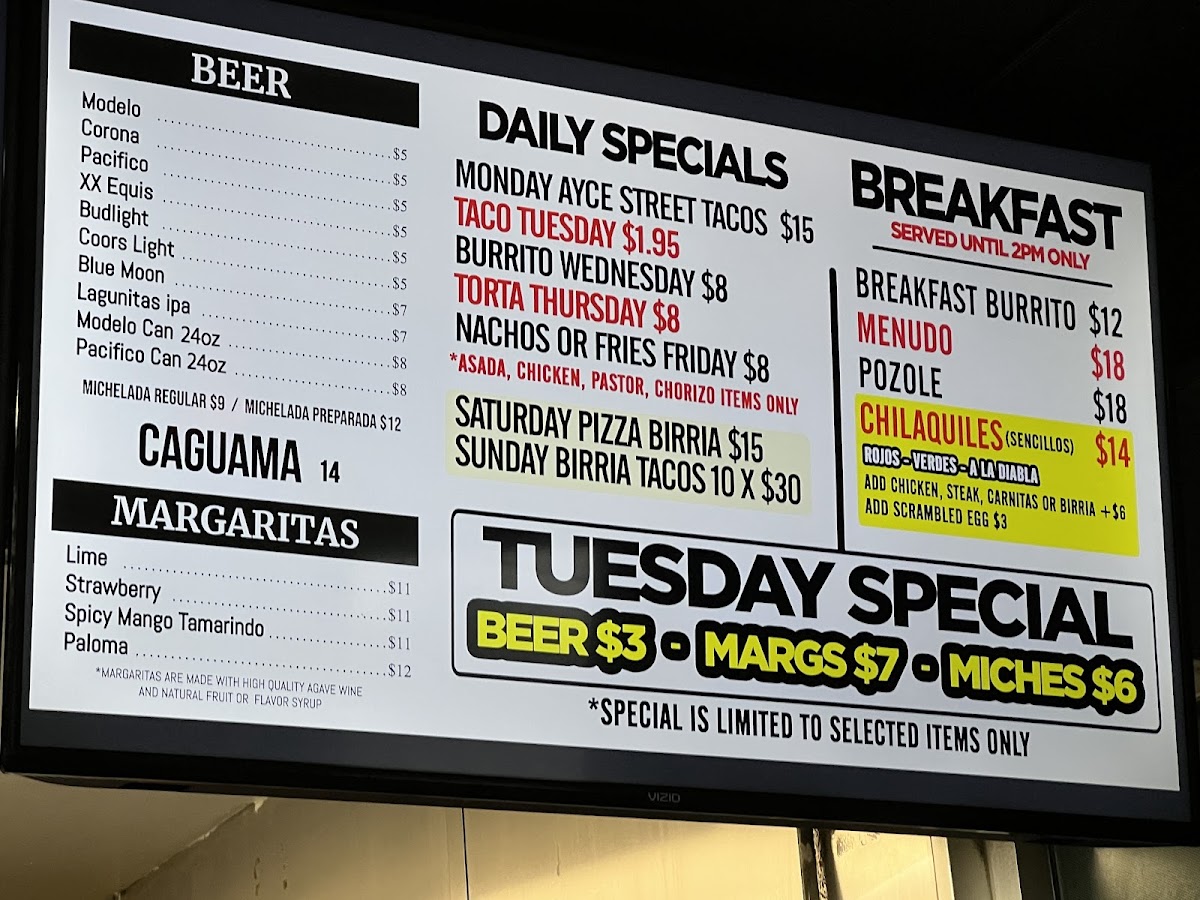 Palapas Tacos Menu