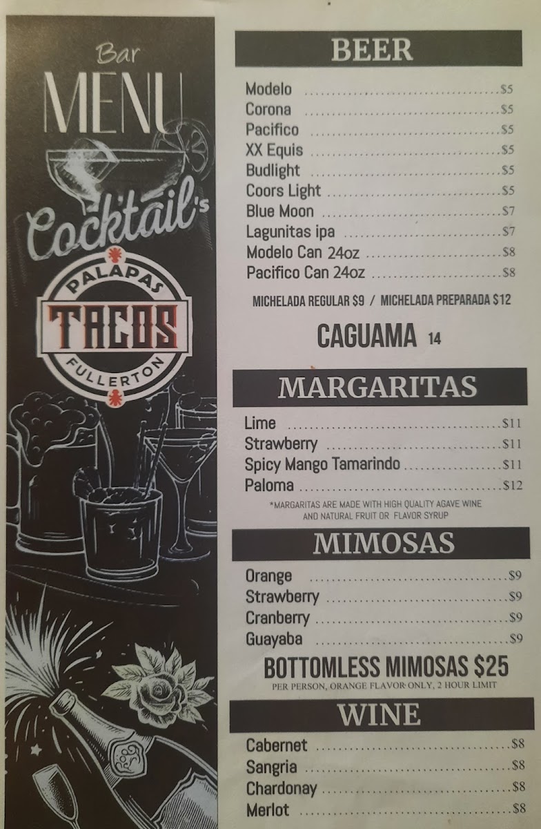 Pair your meal with refreshing margaritas, such as the zesty Spicy Mango Tamarindo or the classic Lime, both priced at $11. The atmosphere is bustling, especially when families and friends gather to indulge in delicious combinations, making every experience memorable. With rave reviews highlighting exceptional service and flavors that exceed expectations, Palapas Tacos is undoubtedly a must-try destination in Fullerton!